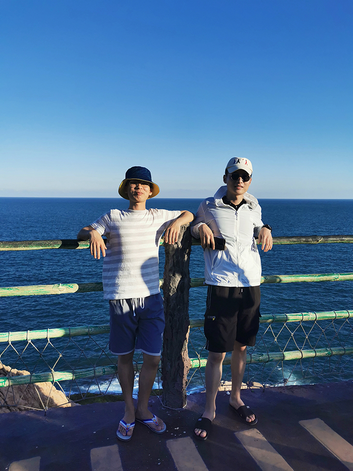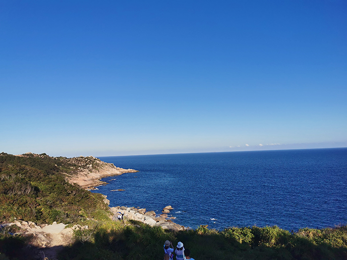 稍作休息后,下午3點多,我們游覽了觀景臺。這里三面環(huán)海,風景如畫?;輺|的雙月灣,由兩片半月形灣畔形成,而這一壯闊美景,只有登頂大星山的觀景臺才能看到。駐足在雙月灣觀景臺的最前端,極目遠眺,藍天、白云、大海,水天相接,令人心曠神怡。