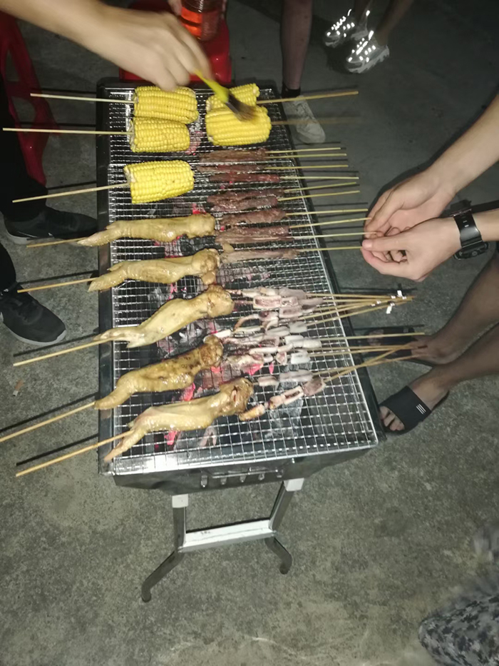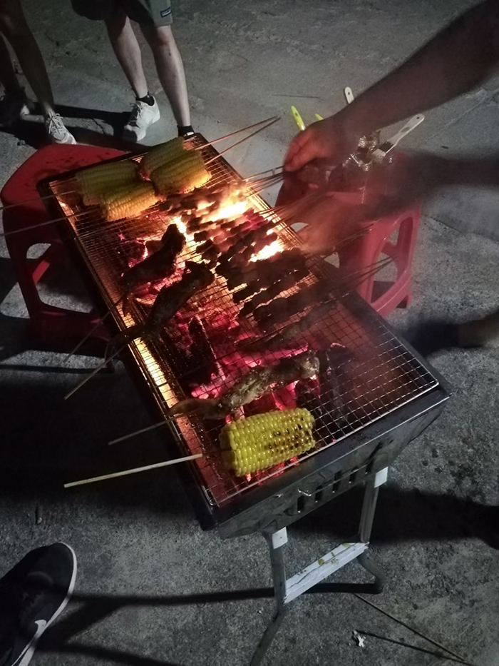 傍晚,我們回到民宿地,分享燒烤,啊,那香啊,鉆入鼻子,讓人神清氣爽,蕩氣回腸;那香啊,調皮地觸摸了一張張笑臉,讓人感受到生活的特殊香味。
